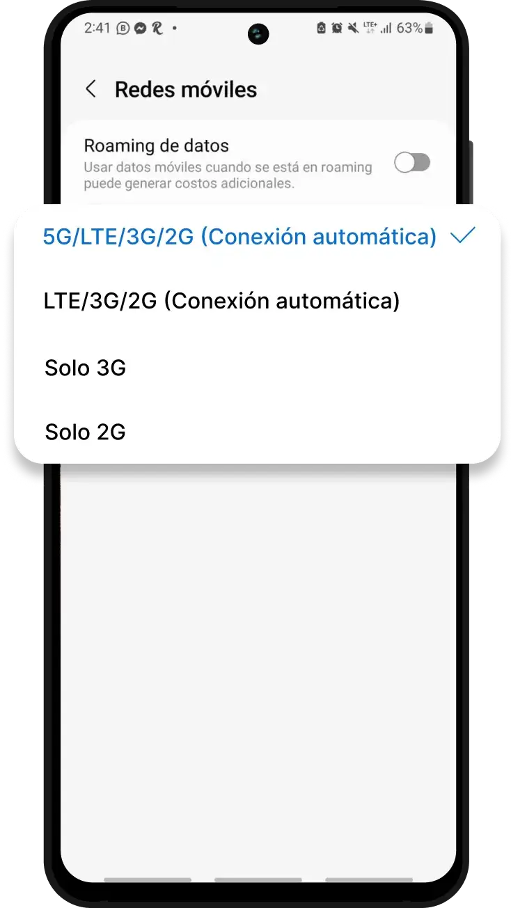 Asegúrese de que la configuración de su dispositivo sea 5G Auto/5G ON y el ahorro de bateria este desactivado.